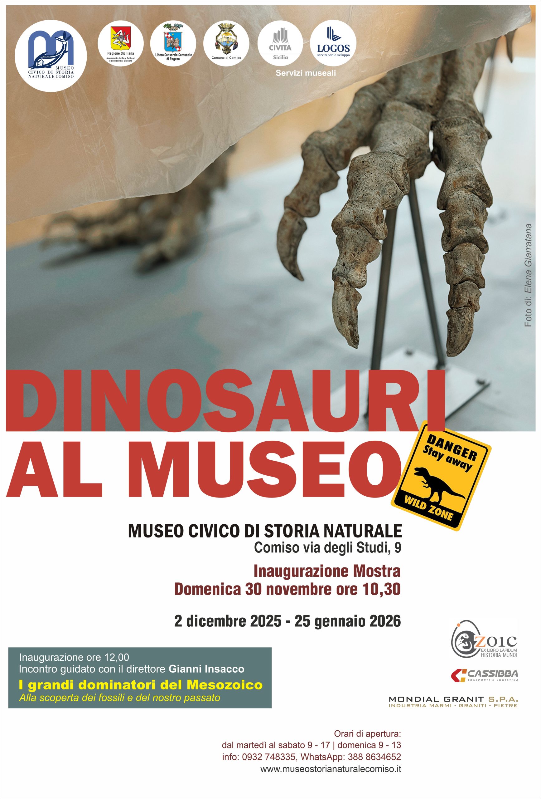 Cosa succede in città? Il 30 novembre ci saranno “Dinosauri al Museo”. “I resti del più grande tirannosauride, unico esemplare esposto in Italia, saranno in mostra a Comiso, nel più grande museo del meridione”. Dichiarazioni del sindaco e di Insacco